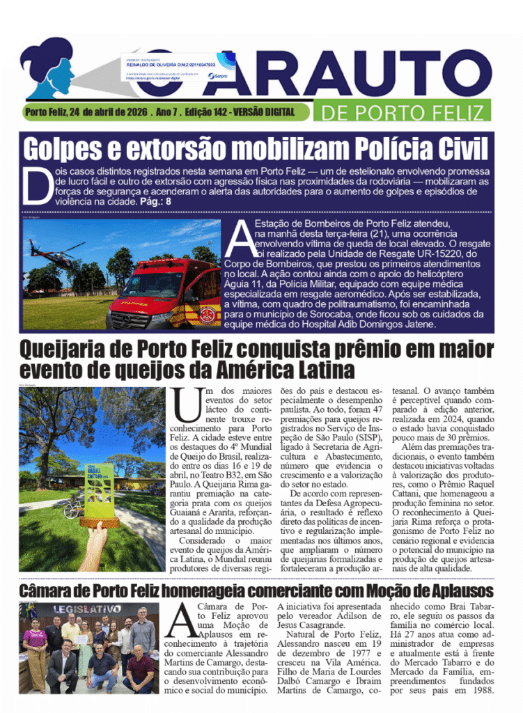 Dois boletins de ocorrência registrados nesta semana em Porto Feliz revelam diferentes crimes que chamaram a atenção das autoridades e reforçam o alerta para golpes e violência na cidade. No primeiro caso, registrado no dia 22 de abril, um eletricista relatou ter sido vítima de estelionato após ser convencido a investir R$ 15 mil em…