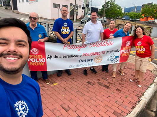 O Rotary Club de Porto Feliz realizou, no sábado (18), o Pedágio Solidário da Poliomielite, uma ação de conscientização e arrecadação de recursos voltada ao combate e à erradicação da poliomielite em todo o mundo. A iniciativa aconteceu no semáforo da Avenida Dr. Antônio Pires de Almeida e contou com a participação de rotarianos e voluntários que, com faixas e mensagens educativas, sensibilizaram motoristas e pedestres sobre a importância de manter viva a luta contra a paralisia infantil — uma doença que, embora quase erradicada, ainda representa risco em alguns países.