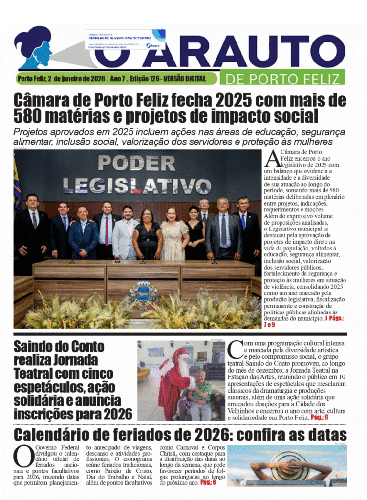 O Arauto é um jornal que traz notícias e matérias da nossa querida cidade de Porto Feliz, que fica localizada no interior do estado de São Paulo